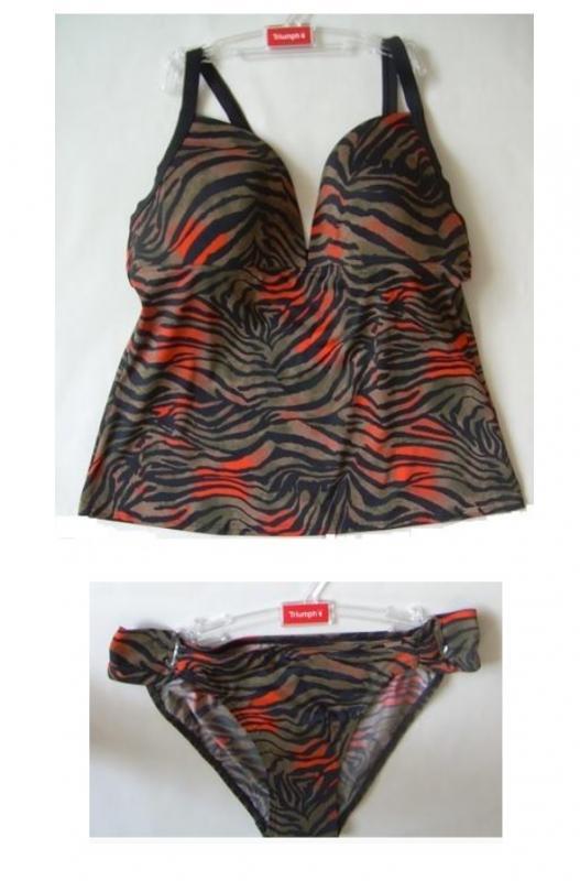 Vezi cosulCostum de baie din 2 piese: partea de sus are sutien fara armatura, cupe captusite usor, bretele reglabile si decolteu in partea din spate pana la linia sutienului. Slipul are talie semiinalta si croiala clasica la spate.