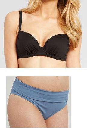 Costum de baie in combinatie de culori, sutienul este cu armatura si cupe usor captusite, inchidere clasica, slipul este cu talie inalta.