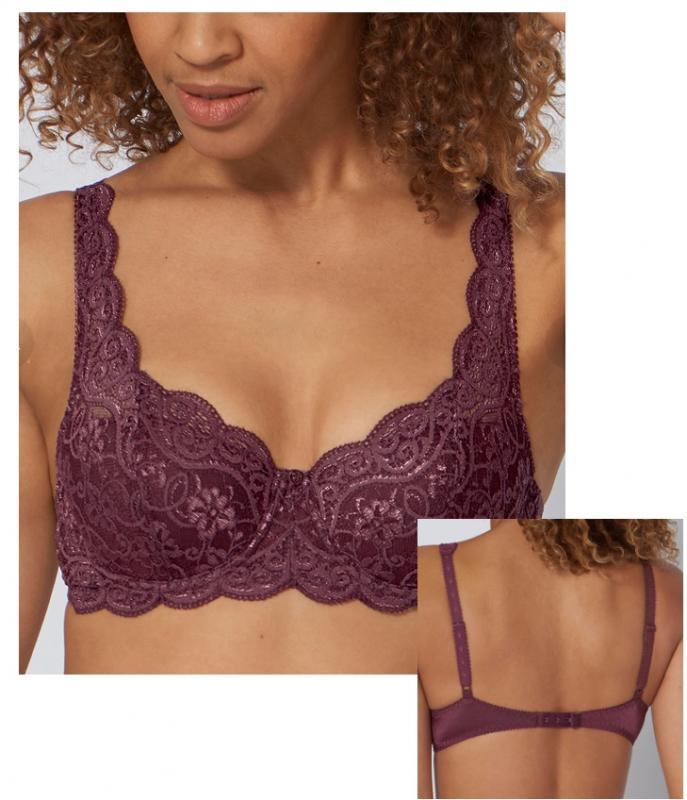 Sutien cu armatura si cupe captusite cu un burete subtire, broderie si dantela pe suprafata exterioara a cupelor. Bretelele care pleaca direct din cupe ajuta foarte mult la sustinere si confort indiferent de circumferinta sau adancimea cupei.