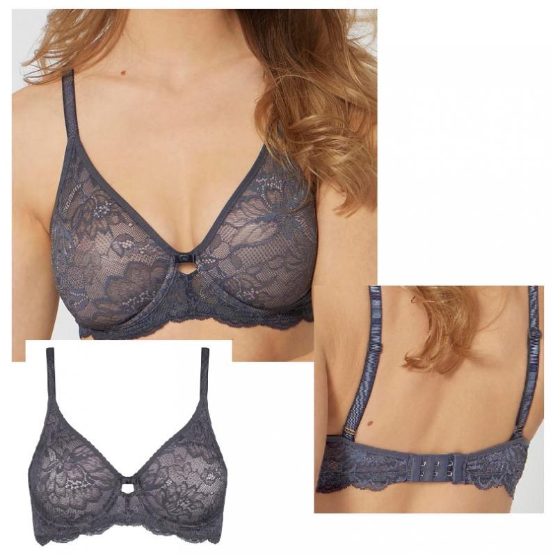 Sutien cu armatura, cupe din dantela si broderie, cu o dublura din material subtire in nuanta dantelei, punte inalta, bretele ajustabile. Un model deosebit de elegant si feminin, care are o sustinere foarte buna. Latimea de la spate si cea a bretelelor se modifica o data cu lungimea circumferintei si adancimea cupei.