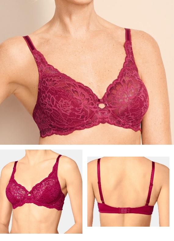 Sutien din dantela si broderie, cu armatura, cupe simple fara burete, bretele ce pornesc direct din cupa pentru a asigura o sustinere si un cofort deosebit pana la cupe si circumferinte mari. Este un model deosebit de elegant si feminin.