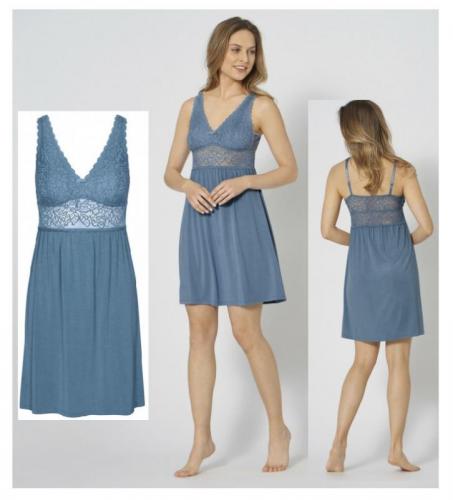 Vezi cosulCamasa de noapte superba din dantela si broderie, cu material jerse in partea de jos, cu bretele din aceeasi dantela superba ca si bustul si partea din spate.