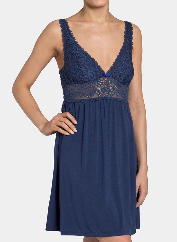 Acest produs este epuizat. Va rugam sa ne contactati pentru alegerea unui produs similar.Camasa de noapte din dantela brodata in partea cupelor si a bretelelor, lungime deasupra genunchiului, taietura in linie dreapta la spate.