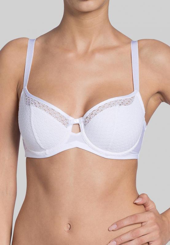 Sutien cu armatura si cupe din broderie, cu o usoara dublura sub aceasta. Dublura are atat effect esthetic cat mai ales de sustinere, la fel ca si puntea si bretelele care au un croi special pentru a realiza o sustinere excelenta.