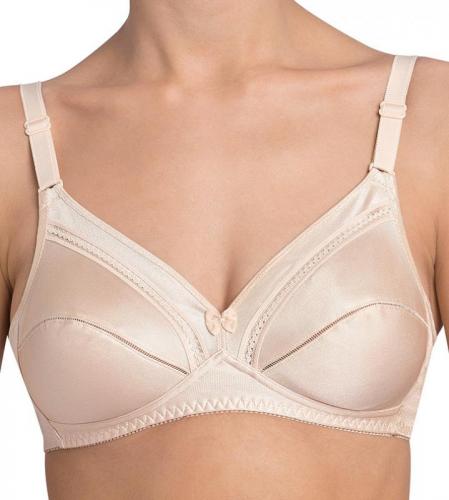 Sutien din categoria clasicelor, fara armatura, cu bretele croite pentru a asigura sustinere si confort pana la cupe si circumferinte mari. Materialul cu aspect usor lucios are un continut de 95% poliamida si 5% elastan.