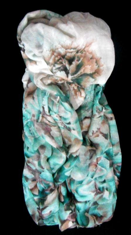 Acest produs este epuizat. Va rugam sa ne contactati pentru alegerea unui produs similar.Esarfa din bumbac subtire, dreptunghi mare (90 x 185 cm), cu motiv floral in nuante palide de verde si maro.