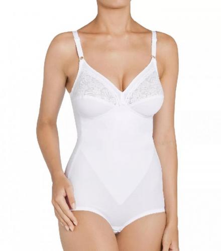 Body Triumph, fara armatura si fara captuseala, cu usoare proprietati de modelare la nivelul abdomenului si dantela in partea superioara a cupelor. In zona intima se inchide cu sistem mos si baba.