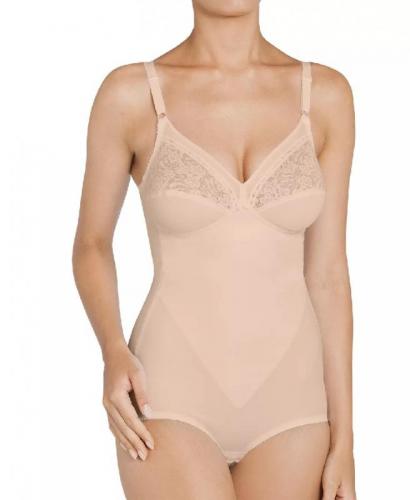 Body Triumph, fara armatura si fara captuseala, cu usoare proprietati de modelare la nivelul abdomenului si dantela in partea superioara a cupelor. In zona intima se inchide cu sistem mos si baba.