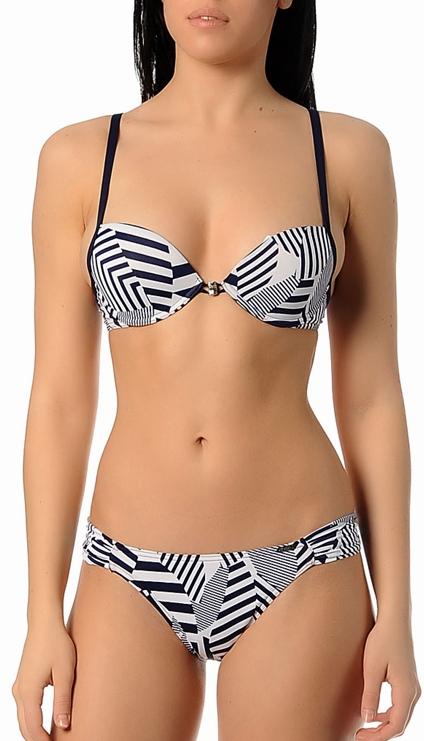 Acest produs este epuizat. Va rugam sa ne contactati pentru alegerea unui produs similar.Costum de baie din 2 piese: sutien cu armatura si cupe usor captusite, bretele subtiri si inchidere la spate, slip usor incretit in lateral pentru un efect perfect al combinatiei geometrice din desen - Ikat Navy TWP.