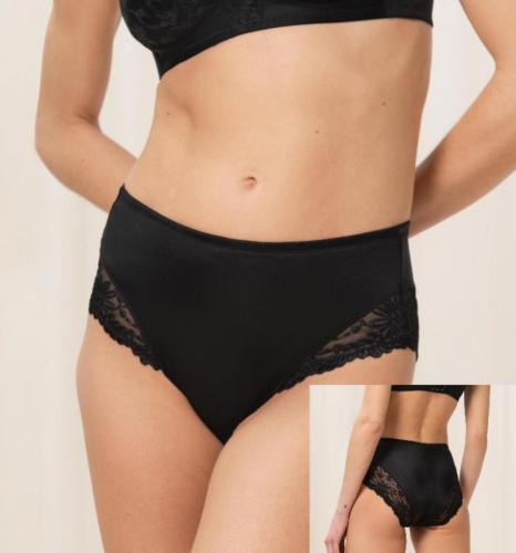 Chilot croiala clasica la spate, talie inalta, broderie in partile laterale, un material cu o tenta usor lucioasa .