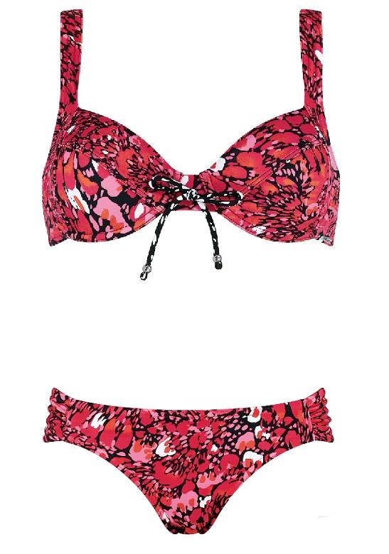 Costum de baie din 2 piese: sutien cu armatura si cupe simple fara captuseala. Croiala cupei este menita sa asigure o foarte buna sustinere, iar bretelele devin putin mai late o data cu cresterea cupei pentru a asigura un confort sporit. Slipul are croiala clasica la spate.