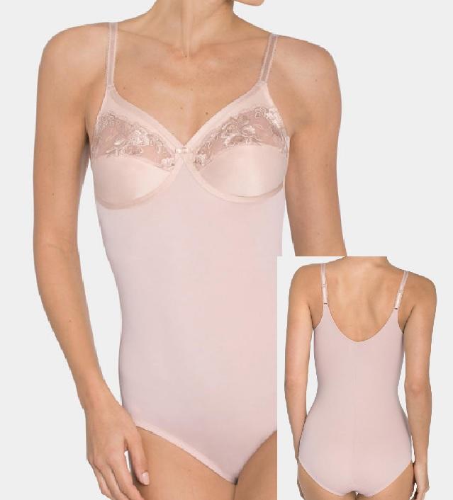 Body din material usor, fara balene, avand sutieul fara armatura, cupele fara burete din material simplu si broderie in jumatatea superioara. Bretelele sunt reglabile, inchiderea se face intre picioare.