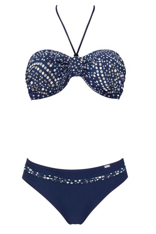 Costum de baie din 2 piese: sutien fara armatura, cupe usor captusite pentru sustinere si pentru o buna asezare pe san, bretele in multiple variante (clasic, una singura din mijloc, detasabile complet), slip croiala clasica.