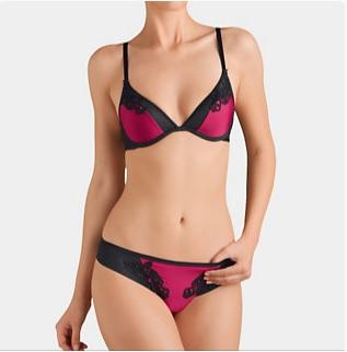Vezi cosulSet de 2 piese format din sutien cu armature si cupe foarte usor captusite, chilot decoltat la spate (croiala string), broderie aplicata. Disponibil: 70C cu chilot 38, 80C cu chilot 42, 70D cu chilot 36