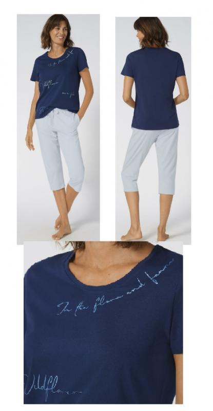 Vezi cosulPijama cu maneca scurta si pantalon treisferturi, un material subtire din bumbac organic 100% ce creaza o senzatie foarte placuta si usoara la purtare.