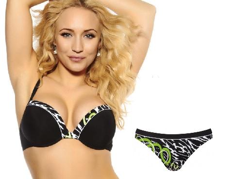 Costum de baie din 2 piese: sutien cu armatura si push-up, din material cu uscare rapida, slip talie joasa si croiala clasica la spate.