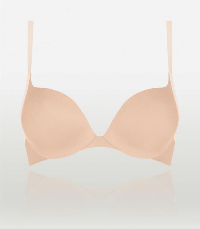 Sutien cu armatura si push-up, cu punte putin distantata astfel incat sa se aseze perfect dupa forma naturala a sanului. In partea de sus, taietura dupa forma scoicii asigura un aspect deosebit de feminin si delicat.