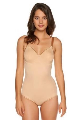 Acest produs este epuizat. Va rugam sa ne contactati pentru alegerea unui produs similar.Body subtire, in nuanta pielii care il face perfect pentru vara, sutienul are armatura si cupe simple doar din materialul body-ului, inchiderea se face in partea de jos. 80% poliamida, 18% elastan.