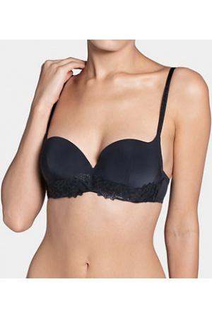 Sutien cu armatura si push-up, croiala balconette si bretele foarte laterale pentru purtare si la tinute decoltate. Aplicatia de broderie din partea de jos a cupelor ii da un aer retro si deosebit de feminine.