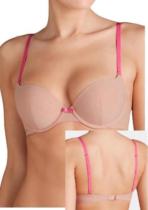 Sutien cu armatura si push-up, bretele ce se pot inchide in multiple forme, se pot detasa si inlocui cu bretele transparente, o combinatie de nuante usor de asortat la multe tinute.