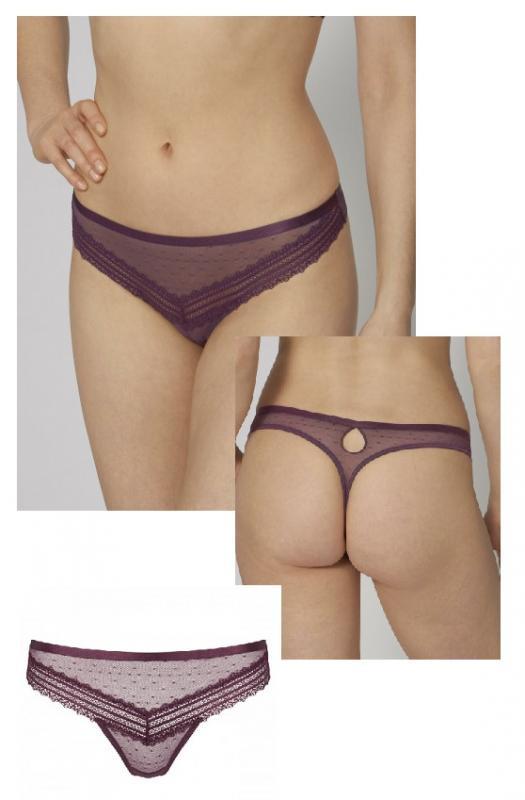 Chilot din tull si dantela brodata, croiala string, elegant si feminin, intr-o nuanta usor de asortat.