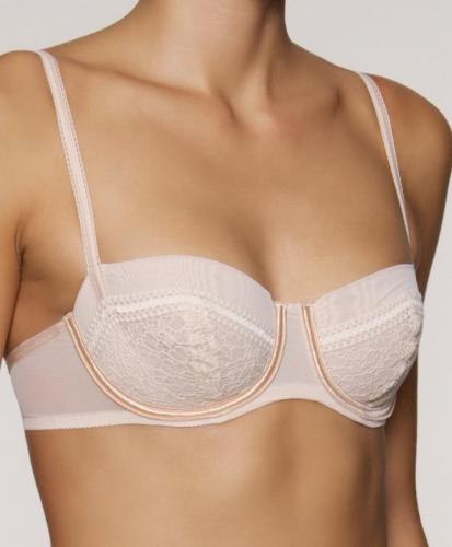 Sutien cu armatura si punte inalta, bretele pozitionate lateral, cupe din material usor, fara adaos sau captuseala, broderie aplicata peste cupa.