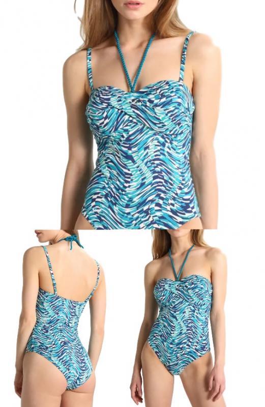 Vezi cosulCostum de biae intreg, material cu proprietatea de uscare rapida. Sutienul este fara armatura (sarma), cu o usoara captueala a cupelor pentru a asigura sustinere si confort. Bretele au multiple forme de prindere sau pot fi detasate complet.