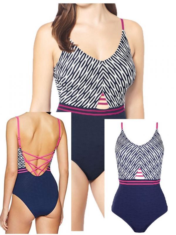 Costum de baie intreg, fara armatura, cupe cu dublura de sutien fara armatura si cupe din burete usor, subtire, bretele reglabile, material cu proprietatea de uscare rapida.